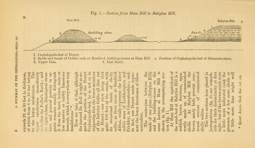 Keywords: The Quarterly journal of the Geological Society of London (12735563475).jpg J BTJCKMAN ON THE CEPHALOPODA-BEDS OF <br> exceeds 28 or 30 feet in thickness <br> of which from 8 to 10 feet belong <br> to the lower subdivision The <br> upper subdivision immediately <br> underlies the Fuller's Earth ; and <br> its light colour lithological struc- <br> ture and general poverty in or- <br> ganic remains readily distinguish <br> it from the hard brown more or <br> less massive or rubbly limestone <br> beneath which is everywhere very <br> f ossiliferous <br> Now we take it that although <br> the learned Dr Holl is right as re- <br> gards the position of the Dorset <br> Cephalopoda-bed he is not so in <br> supposing that the lower members <br> of the Inferior Oolite all thin out <br> in Dorset ” our view being that <br> quite 100 feet of the sands with <br> its occasional bands of shelly <br> oolite as these occur at Bradford <br> Abbas really represent the lower <br> oolitic mass of Leckhampton and <br> Crickley in Gloucestershire ; and <br> in fact our Dorset sands repre- <br> sent the lower freestones of Glou- <br> cestershire <br> The connexion between the <br> sands of one place Babylon Hill <br> and the building-stones on the <br> same horizon at Ham Hill is <br> shown in the accompanying sec- <br> tion fig 1 <br> At Ham Hill the equivalent of <br> the sand-bed at Babylon Hill is a <br> reddish brown freestone appa- <br> rently made up of comminuted <br> shells At Babylon Hill the <br> brown sandy beds present occa- <br> sional courses of comminuted <br> shelly oolites <br> The two sections here placed in <br> juxtaposition fig 2 are remark- <br> able for their dissimilarity at first <br> sight ; but if the brown sands were <br> a little more indurated and the <br> presence of a few more shells or <br> a little more lime might well <br> Quart Journ Gcol Soc vol xix <br> OS tO –º-' <br> a co p <br> o <br> p <br> a 1 <br> <br> 5 o- <br> £L o <br> 5 t <br> bd <br> –º – <br> P <br> £ 2 <br> CO I ” I <br> So <br> T 1 <br> p <br> B <br> O <br> o <br> CD <br> cT <br> c <br> o <br> S3 <br> 4 S <br> w <br> r <br> mm g <br> hiH - <br> Pil i <br> a <br> Q <br> tts <br> t c <br> o 35818111 110705 51125 Page 4 Text 33 http //www biodiversitylibrary org/page/35818111 1877 Geological Society of London Biodiversity Heritage Library The Quarterly journal of the Geological Society of London v 33 1877 Geology Periodicals Smithsonian Libraries bhl page 35818111 dc identifier http //biodiversitylibrary org/page/35818111 smithsonian libraries Information field Flickr posted date ISOdate 2014-02-24 Check categories 2015 August 26 CC-BY-2 0 BioDivLibrary https //flickr com/photos/61021753 N02/12735563475 2015-08-26 19 58 19 cc-by-2 0 PD-old-70-1923 The Quarterly journal of the Geological Society of London 1877 Photos uploaded from Flickr by Fæ using a script |