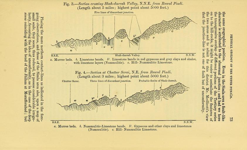 | Keywords: The Quarterly journal of the Geological Society of London (12733760933).jpg 74 A B WYNNE ON SOME FEATURES IN THE <br> it should be remembered that the depth of this bay is twenty miles <br> on its shortest side lying within British territory on the right <br> bank of the Jhilam that this side is there nearly a straight line and <br> as strongly resembles a fault separating highly contorted rocks as any <br> other portion of the contact Examined in the same way other parts <br> of the junction lose much of their apparent sinuosity <br> 17 The sudden change in the direction of the ranges and strike of <br> the rocks in the Jhilam valley has been already mentioned ; and in this <br> connexion it is somewhat singular to mark that on the further side <br> of that river from our district in the tributary valley of the Poonch <br> Kashmere occurs the nearest instance of the unconformity con- <br> tended for by Mr Medlicott at a place called Dundelee The strike <br> of the rocks E 35° S belongs to the same system as that of the <br> Himalaya east of the Jhilam valley ; and the section as given in Mr <br> Medlicott's report is extracted fig 5 for comparison with those <br> Fig 5 ” Section at Dundelee Poonch Valley <br> From 'Mem Greol Surv India ' vol iii pi 2 p 96 <br> c\ Krql group c 2 Infra-Krol d Subathu group <br> within our district figs 2 3 and 4 and lying about 45 miles to the <br> west-north-west <br> The hard blue limestone c 1 in this section taken by Mr Med- <br> licott to represent his Krol subdivision if it is the same as that of <br> Mochipoora Mountain as may be gathered from a footnote at p 92 <br> of the Report is most probably Nummulitic or might also include <br> some of the Triassic limestones of that range ; at any rate it would <br> appear to belong to the Hill-limestone rocks c 2 is said to be com- <br> posed of thin carbonaceous slaty shales which if they are the same <br> as those of Shah-durrah mentioned in the succeeding passage pro- <br> bably belong to the zone marked d in the section fig 5 ; indeed <br> this might be inferred from the parallelism to the latter which <br> Mr Medlicott mentions d 2 red sandstone and clays and d 3 num- <br> mulitic clays and limestones are evidently the same as those of <br> the Murree beds previously described under letter E If the slaty <br> shales c 2 pass conformably below the limestone c 1 they probably <br> represent some of the many hard splintery shaly beds of the Mochi- <br> poora nummulitic rocks <br> Of course without having seen the Dundelee section these remarks <br> upon it are given with reserve ; still it is much nearer to our district <br> than to the Simla area and this must be the excuse for an attempt <br> to interpret it according to Upper-Punjab experience 35765927 110599 51125 Page 73 Text v 30 http //www biodiversitylibrary org/page/35765927 1874 Geological Society of London Biodiversity Heritage Library The Quarterly journal of the Geological Society of London v 30 1874 Geology Periodicals Smithsonian Libraries bhl page 35765927 dc identifier http //biodiversitylibrary org/page/35765927 smithsonian libraries Information field Flickr posted date ISOdate 2014-02-24 Check categories 2015 August 26 CC-BY-2 0 BioDivLibrary https //flickr com/photos/61021753 N02/12733760933 2015-08-26 19 50 25 cc-by-2 0 PD-old-70-1923 The Quarterly journal of the Geological Society of London 1874 Photos uploaded from Flickr by Fæ using a script |