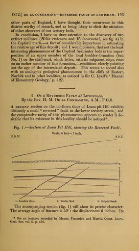 MAKE A MEME View Large Image The Quarterly journal of the Geological Society of London (12684314643).jpg 1852 DE LA CONDAMINE REVERSED FAULT AT LEWISHAM 193 <br> other parts of England I have thought their occurrence in this <br> district worthy of remark and as heing ...
