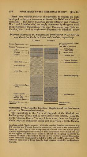 Keywords: The Quarterly journal of the Geological Society of London (12684285213).jpg 150 <br> PROCEEDINGS OF THE GEOLOGICAL SOCIETY Feb 25 <br> After these remarks we are at once prepared to compare the rocks <br> developed in the great transverse sections of the Welsh and Cumbrian <br> mountains The lower Cambrian groups Bangor and Festiniog <br> Nos 1 and 2 tabular view are amply represented by the green slates <br> and porphyries of Cumberland The upper Cambrian groups Bala and <br> Caradoc Nos 3 and 4 are however imperfectly in thickness clearly <br> Diagram illustrating the Comparative Development of the Silurian <br> and Cambrian Rocks in Wales and Cumbria respectively <br> Cambria Cumbria <br> Upper PALiEozoic <br> Middle PALiEozoic <br> Ludlow <br> Wenlock <br> Caradoc <br> Upper Bala <br> Bala Limestone <br> /Carboniferous Lime- <br> l stone <br> Old Red Sandstone <br> Kirkby flags <br> Coarse slates <br> Ireleth slates <br> Coniston grits <br> Coniston flagstone <br> Coniston limestone <br> Lower Bala <br> Slates and porphyry <br> Arenig slates and por- <br> phyry <br> Tremadoc slates <br> Lingula flags <br> Harlech grits <br> Llanberris slates <br> Metamorphic <br> Granite <br> SMddaw slates <br> Metamorphic <br> Granite <br> represented by the Coniston limestone flagstone and the hard coarse <br> grits of the Westmoreland sections <br> The equivalents in the North of England of the Wenlock and <br> Ludlow groups Nos 5 and 6 have already been noticed Using the <br> words Silurian System in any definite sense these are the groups <br> which truly and exclusively belong to it as a system ; for the Caradoc <br> the characteristic Wenlock species ; while the so-called Caradoc sandstone of May <br> Hill contains the Wenlock fossils in abundance and none of the characteristic <br> Cambrian types But is there a single section in which these two distinct groups <br> of fossils appear together in one stage If no such section can be found why may <br> we not suppose that the Caradoc sandstone of May Hill is a group superior to the <br> Caradoc sandstone of Horderley Should we ever be able to answer this question <br> in the afBrmative the ambiguity alluded to in the text would be at an end The <br> statement here given is drawn from the fossil evidence supplied by the Cambridge <br> Museum 35461152 109911 51125 Page 150 Text v 8 http //www biodiversitylibrary org/page/35461152 1852 Geological Society of London NameFound Cambria NameConfirmed Cambria NameBankID 4453973 NameFound Lingula NameConfirmed Lingula EOLID 11118945 NameBankID 2765654 Biodiversity Heritage Library The Quarterly journal of the Geological Society of London v 8 1852 Geology Periodicals Smithsonian Libraries bhl page 35461152 dc identifier http //biodiversitylibrary org/page/35461152 smithsonian libraries Information field Flickr posted date ISOdate 2014-02-21 Check categories 2015 August 26 CC-BY-2 0 BioDivLibrary https //flickr com/photos/61021753 N02/12684285213 2015-08-27 12 57 45 cc-by-2 0 PD-old-70-1923 The Quarterly journal of the Geological Society of London 1852 Photos uploaded from Flickr by Fæ using a script |