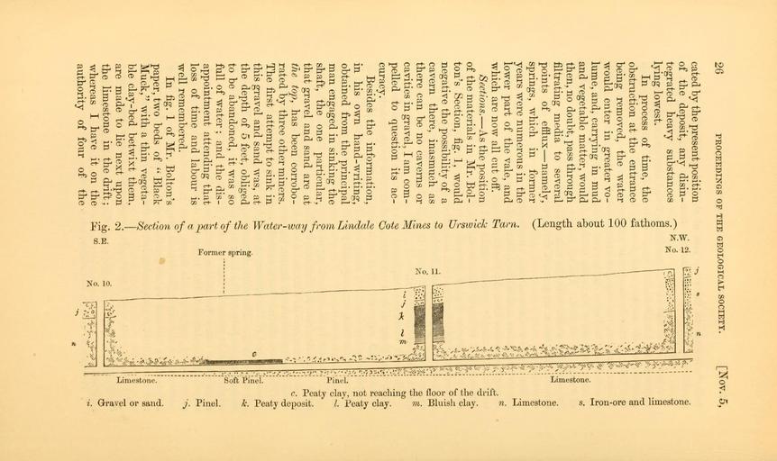 | Keywords: The Quarterly journal of the Geological Society of London (12645774803).jpg 26 <br> PROCEEDINGS OF THE GEOLOGICAL SOCIETY NOV 5 <br> cated by the present position <br> of the deposit any disin- <br> tegrated heavy substances <br> lying lowest <br> In process of time the <br> obstruction at the entrance <br> being removed the water <br> would enter in greater vo- <br> lume and carrying in mud <br> and vegetable matter would <br> then no doubt pass through <br> filtrating media to several <br> points of efflux ” namely <br> springs which in former <br> years were numerous in the <br> lower part of the vale and <br> which are now all cut off <br> Sections ” As the position <br> of the materials in Mr Bol- <br> ton's Section fig 1 would <br> negative the possibility of a <br> cavern there inasmuch as <br> there can be no caverns or <br> cavities in gravely I am com- <br> pelled to question its ac- <br> curacy <br> Besides the information <br> in his own hand-writing <br> obtained from the principal <br> man engaged in sinking the <br> shaft the one particular <br> that gravel and sand are at <br> the top has been corrobo- <br> rated by three other miners <br> The first attempt to sink in <br> this gravel and sand was at <br> the depth of 5 feet obliged <br> to be abandoned it was so <br> full of water ; and the dis- <br> appointment attending that <br> loss of time and labour is <br> well remembered <br> In fig 1 of Mr Bolton's <br> paper two beds of Black <br> Muck with a thin vegeta- <br> ble clay-bed betwixt them <br> are made to lie next upon <br> the limestone in the drift ; <br> whereas I have it on the <br> authority of four of the 35327977 109632 51125 Page 26 Text v 19 http //www biodiversitylibrary org/page/35327977 1863 Geological Society of London Biodiversity Heritage Library The Quarterly journal of the Geological Society of London v 19 1863 Geology Periodicals Smithsonian Libraries bhl page 35327977 dc identifier http //biodiversitylibrary org/page/35327977 smithsonian libraries Information field Flickr posted date ISOdate 2014-02-20 Check categories 2015 August 26 CC-BY-2 0 BioDivLibrary https //flickr com/photos/61021753 N02/12645774803 2015-08-27 11 00 28 cc-by-2 0 PD-old-70-1923 The Quarterly journal of the Geological Society of London 1863 Photos uploaded from Flickr by Fæ using a script |
