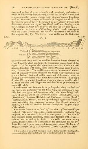 | Keywords: The Quarterly journal of the Geological Society of London (12645499354).jpg 184 <br> PROCEEDINGS OF THE GEOLOGICAL SOCIETY DeC 13 <br> E by S <br> stone and marble of grey yellowish and occasionally pink colours <br> which at Untersberg near Salzburg around the valley of Gosau and <br> at numerous other places plunges under strata of impure limestone <br> marl and sandstone charged with fossils of the gault and chalk In <br> the western parts of Savoy however it is more clearly divisible into <br> three zones than at the city of Neufchatel itself and the diagram of <br> the Montague du Chat already given explains the fact see fig 3 <br> In another section west of Chambery which I made in company <br> with the Canon Chamousset the order of the strata is exhibited in <br> this diagram fig 5 The lowest rocks visible are the Oxfordian <br> T - W by N <br> Fig 5 <br> Tertiary <br> r b <br> Cretaceous ¢ a <br> i a <br> 1 2 <br> Marine molasse <br> Freshwater limestone and conglomerate <br> Upper Neocomian Chama ammonia <br> Bliddle Neocomian Spatangus retusus <br> JiOwer Neocomian Oyster bands <br> Oxfordian Jura and coral rag limestone <br> limestones and shale and the coralline limestone before adverted to <br> Nos 1 and 2 which constitute the uppermost Jurassic band of this <br> region On this reposes the lowest neocomian « which is a hard <br> siliceous limestone with small sharp-plaited Ostrese a small Terebra- <br> tula Nerinaea c The middle neocomian a consists of alterna- <br> tions of bluish grey marly limestone and bands of green-grained calc <br> grit and beds of chert and in this band most of the fossils occur in- <br> cluding the very characteristic form Spatangus retusus The upper <br> division b is a whitish limestone often in a state of marble which <br> in Savoy contains both Hippurites and the Chama Caprotina am- <br> monia D'Orb <br> For the most part however in its prolongation along the flanks of <br> the Savoy and particularly in the Swiss Alps the neocomian is divi- <br> sible into two great subformations only ; the lower being dark- <br> coloured and marked by the Gryphcea Couloni Leym Rhynconella <br> Terebratida depressa D'Orb and Spatangus retusus Lamk <br> Spatangus-kalk Studer and the upper being a light-coloured hme- <br> stone containing the Caprotina ammonia the Schratten-kalk of <br> Escher is a sure and excellent horizon throughout the greater part <br> of the Alpsf <br> Cretaceous Greensand or Gault of the Alps Turriliten-Etagef <br> Escher ” The largely exposed neocomian limestone of the Savoy Alps <br> supports as above stated in various escarpments a thin zone of <br> dark-coloured marly limestone occasionally freckled with grains of <br> chlorite and abounding in fossils In a collection made by my <br> guide Auguste Balmat of Chamonix at the Montague des Fis Pro- <br> fessor Pictet of Geneva recognized Ammonites cristatus De Luc ; A <br> Hugardianus D'Orb ; A Mayorianus D'Orb ; A injlatus Sow ; <br> t It is worthy of note that this upper band as distinguished by the Caprotina <br> ammonia is absent at Neufchatel as well as the lower part of the formation 35268828 109512 51125 Page 184 Text v 5 http //www biodiversitylibrary org/page/35268828 1849 Geological Society of London NameFound terebratida depressa NameFound A injlatus NameFound Ammonites cristatus NameConfirmed Ammonites cristatus NameBankID 6487241 NameFound Caprotina NameConfirmed Caprotina NameBankID 4103255 NameFound Caprotina ammonia NameFound Chama NameConfirmed Chama EOLID 10720381 NameBankID 2693785 NameFound Chama ammonia NameFound Hippurites NameConfirmed Hippurites EOLID 4773611 NameBankID 4195877 NameFound Hugardianus NameFound Nerinaea NameConfirmed Nerinaea NameBankID 4257357 NameFound Rhynconella NameConfirmed Rhynconella NameBankID 4331074 NameFound Spatangus retusus NameFound Terebra tula Biodiversity Heritage Library The Quarterly journal of the Geological Society of London v 5 1849 Geology Periodicals Smithsonian Libraries smithsonian libraries Information field Flickr posted date ISOdate 2014-02-20 Check categories 2015 August 26 CC-BY-2 0 BioDivLibrary https //flickr com/photos/61021753 N02/12645499354 2015-08-27 10 51 56 cc-by-2 0 PD-old-70-1923 The Quarterly journal of the Geological Society of London 1849 Photos uploaded from Flickr by Fæ using a script |
