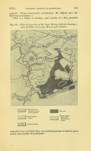 | Keywords: The Quarterly journal of the Geological Society of London (12512988683).jpg <br> This is a felsite or trachyte and consists of a fine granular <br> Fig 16 Plan of a portion of the Gape Mining-district showing a <br> dyke of Felsite traversing Metamorphic Schists <br> Post Pliocene <br> Alluvial Upper <br> Gold Deposit <br> Desert Sand- <br> stone <br> m <br> Metamorphic <br> Mica and <br> Hornblende <br> felspathic base in which there are scattered groups of minute green <br> grains and crystals of hornblende 34985318 108770 51125 Page 305 Text v 28 http //www biodiversitylibrary org/page/34985318 1872 Geological Society of London Biodiversity Heritage Library The Quarterly journal of the Geological Society of London v 28 1872 Geology Periodicals Smithsonian Libraries bhl page 34985318 dc identifier http //biodiversitylibrary org/page/34985318 smithsonian libraries Information field Flickr posted date ISOdate 2014-02-14 Check categories 2015 August 26 CC-BY-2 0 BioDivLibrary https //flickr com/photos/61021753 N02/12512988683 2015-08-27 09 59 18 cc-by-2 0 PD-old-70-1923 The Quarterly journal of the Geological Society of London 1872 Photos uploaded from Flickr by FĂŚ using a script |