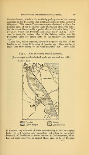 | Keywords: The Quarterly journal of the Geological Society of London (13960021713).jpg ROCKS OF THE LEICESTEKSHIRE COAL-FIELD 21 <br> in contact with the Main Coal whilst at Boothorpe we know they <br> overlie strata belonging to a very much higher horizon in the Coal- <br> measures <br> 2 LlTHOLOGICAL CHARACTERS OF THE BEDS <br> Throughout the whole of the district we are describing the Per- <br> mian beds maintain certain well-marked lithological characters <br> which apart from any consideration as to the stratigraphical position <br> of the series are sufficient to differentiate them with certainty from <br> both the Trias and the Carboniferous At their outcrop they gener- <br> ally yield a subsoil of deep red or purple clay sometimes sandy and <br> containing more or less of brecciated fragments When observed <br> in freshly cut sections such as those described above pp 6 8 as <br> occurring at Swadlincote and the Boothorpe Clay Works it is seen <br> that the red and purple clays which are associated as a rule with <br> thin white sandy bands and several beds of breccia occur at the base <br> of the series The red clays are much more purple in colour and more <br> homogeneous in character than the marls of the Lower Keuper and <br> are of a decidedly different shade of colour from the marls of the <br> Upper Keuper The Permian marls with their breccias are at <br> Swadlincote followed upwards by a few feet of evenly bedded fine- <br> grained sandstones which are fissile and often beautifully ripple- <br> marked These sandstones are of a light buff colour as a rule very <br> soft and contain numerous specks of a blackish mineral They are <br> very unlike the saudstones found on any other geological horizon in <br> the district <br> The principal interest however centres in the brecciated bands <br> which it will be seen have yielded a large amount of information <br> throwing light upon the physical changes attending the deposition <br> of the whole series <br> The brecciated bands are rarely more than 3 feet in thickness and <br> contain fragments of a great variety of rock all comparatively little <br> water-worn and varying in size from that of a pea to 5 or 6 inches <br> across Occasionally still larger fragments occur; bat as a rule <br> they do not measure more than 1 to 2 inches along their greatest <br> dimensions <br> These angular pieces of rock are imbedded in a bluish-grey matrix <br> of calcareous sand which varies very much in hardness Sometimes <br> as at Measham and Oakthorpe it forms with the enclosed fragments <br> a rock of a considerable degree of hardness whilst at other places <br> as jNewhall Park Colliery Swadlincote c it is only in part con- <br> solidated and readily breaks down under the action of the weather <br> The red marly soil at the outcrop of the Permians is of a very rich and <br> fertile character and affords in this respect a great contrast to the very light <br> sandy and pebbly soil of the Bunter and to the cold heavy soil of the under- <br> lying Coal-measure clays The Permian marls are in some localities used <br> for dressing the sandy soils of the Bunter which are so light as occasionally <br> to be completely denuded by the action of the wind 36939760 113696 51125 Page 19 Text 45 http //www biodiversitylibrary org/page/36939760 1889 Geological Society of London Biodiversity Heritage Library The Quarterly journal of the Geological Society of London v 45 1889 Geology Periodicals Smithsonian Libraries bhl page 36939760 dc identifier http //biodiversitylibrary org/page/36939760 smithsonian libraries Information field Flickr posted date ISOdate 2014-04-21 Check categories 2015 August 26 CC-BY-2 0 BioDivLibrary https //flickr com/photos/61021753 N02/13960021713 2015-08-26 06 51 51 cc-by-2 0 PD-old-70-1923 The Quarterly journal of the Geological Society of London 1889 Photos uploaded from Flickr by Fæ using a script |