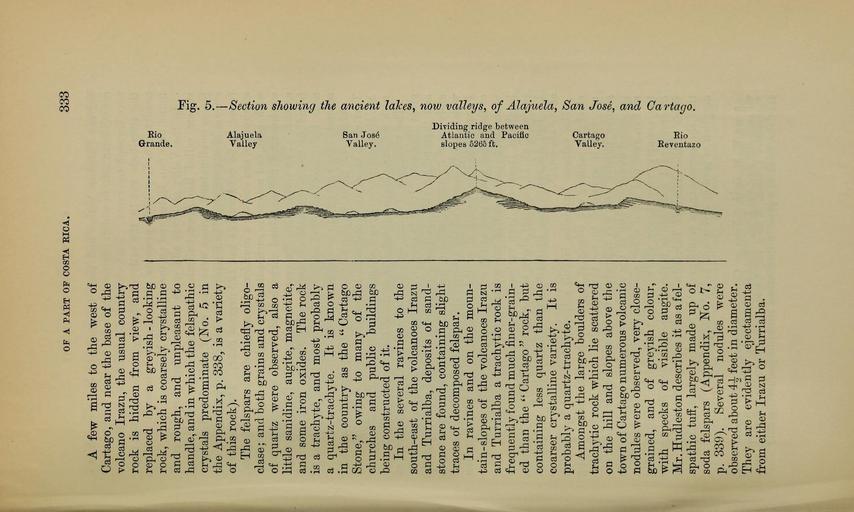 | Keywords: The Quarterly journal of the Geological Society of London (13859877545).jpg OF A PAKT OP COSTA RICA <br> 333 <br> A few miles to the west of <br> Cartago and near the base of the <br> ˘volcano Irazu the usual country <br> rock is hidden from view and <br> replaced by a greyish - looking <br> rock which is coarsely crystalline <br> and rough and unpleasant to <br> handle and in which the felspathic <br> crystals predominate No 5 in <br> the Appendix p 338 is a variety <br> of this rock <br> The felspars are chiefly oligo- <br> clase; and both grains and crystals <br> of quartz were observed also a <br> little sanidine augite magnetite <br> and some iron oxides The rock <br> is a trachyte and most probably <br> a quartz-trachyte It is known <br> in the country as the Cartago <br> Stone owing to many of the <br> churches and public buildings <br> being constructed of it <br> In the several ravines to the <br> south-east of the volcanoes Irazu <br> and Turrialba deposits of sand- <br> stone are found containing slight <br> traces of decomposed felspar <br> In ravines and on the moun- <br> tain-slopes of the volcanoes Irazu <br> and Turrialba a trachytic rock is <br> frequently found much finer-grain- <br> ed than the Cartago rock but <br> containing less quartz than the <br> coarser crystalline variety It is <br> probably a quartz-trachyte <br> Amongst the large boulders of <br> trachytic rock which lie scattered <br> on the hill and slopes above the <br> town of Cartago numerous volcanic <br> nodules were observed very close- <br> grained and of greyish colour <br> with specks of visible augite <br> Mr Hudleston describes it as a fel- <br> spathic tuff largely made up of <br> soda felspars Appendix No 7 <br> p 339 Several nodules were <br> observed about 4-1- feet in diameter <br> They are evidently ejectamenta <br> from either Irazu or Turrialba <br> Be <br> ÂŁ3 <br> I <br> O <br> S3 <br> S <br> S § 36936126 113692 51125 Page 333 Text 38 http //www biodiversitylibrary org/page/36936126 1882 Geological Society of London NameFound Turrialba NameConfirmed Turrialba NameBankID 5142375 Biodiversity Heritage Library The Quarterly journal of the Geological Society of London v 38 1882 Geology Periodicals Smithsonian Libraries bhl page 36936126 dc identifier http //biodiversitylibrary org/page/36936126 smithsonian libraries Information field Flickr posted date ISOdate 2014-04-15 Check categories 2015 August 26 CC-BY-2 0 BioDivLibrary https //flickr com/photos/61021753 N02/13859877545 2015-08-26 07 56 44 cc-by-2 0 PD-old-70-1923 The Quarterly journal of the Geological Society of London 1882 Photos uploaded from Flickr by Fæ using a script |