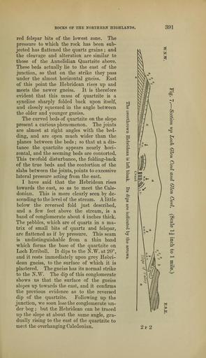 Keywords: The Quarterly journal of the Geological Society of London (13204780465).jpg ROCKS OP THE NORTHEEN HIGHLANDS <br> 391 <br> red felspar bits of -the lowest zone The <br> pressure to which the rock has been sub- <br> jected has flattened the quartz grains ; and <br> the cleavage and alteration are similar to <br> those of the Annelidian Quartzite above <br> These beds actually lie to the east of the <br> junction so that on the strike they pass <br> under the almost horizontal gneiss East <br> of this point the Hebridean rises up and <br> meets the newer gneiss It is therefore <br> evident that this mass of quartzite is a <br> syncline sharply folded back upon itself <br> and closely squeezed in the angle between <br> the older and younger gneiss <br> The curved beds of quartzite on the slope <br> present a curious phenomenon The joints <br> are almost at right angles with the bed- <br> ding and are open much wider than the <br> planes between the beds ; so that at a dis- <br> tance the quartzite appears nearly hori- <br> zontal and the seeming beds are contorted <br> This twofold disturbance the folding-back <br> of the true beds and the contortion of the <br> slabs between the joints points to excessive <br> lateral pressure acting from the east <br> I have said that the Hebridean rises <br> towards the east so as to meet the Cale- <br> donian This is more clearly seen by de- <br> scending to the level of the stream A little <br> below the reversed fold just described <br> and a few feet above the stream is a <br> band of conglomerate about 4 inches thick <br> The pebbles which are of quartz in a ma- <br> trix of small bits of quartz and felspar <br> are flattened as if by pressure This seam <br> is un distinguishable from a thin band <br> which forms the base of the quartzite on <br> Loch Emboli It dips to the N W at 20° <br> and it rests immediately upon grey Hebri- <br> dean gneiss to the surface of which it is <br> plastered The gneiss has its normal strike <br> to the N W The dip of this conglomerate <br> shows us that the surface of the gneiss <br> slopes up towards the east and it confirms <br> the previous evidence as to the reversed <br> dip of the quartzite Following up the <br> junction we soon lose the conglomerate un- <br> der bog ; but the Hebridean can be traced <br> up the slope at about the same angle gra- <br> dually rising to the east of the quartzite to <br> meet the overhanging Caledonian <br> –º5' <br> 'S <br> £ <br> 5 <br> m <br> 2f2 36928998 113681 51125 Page 391 Text 39 http //www biodiversitylibrary org/page/36928998 1883 Geological Society of London Biodiversity Heritage Library The Quarterly journal of the Geological Society of London v 39 1883 Geology Periodicals Smithsonian Libraries bhl page 36928998 dc identifier http //biodiversitylibrary org/page/36928998 smithsonian libraries Information field Flickr posted date ISOdate 2014-03-16 Check categories 2015 August 26 CC-BY-2 0 BioDivLibrary https //flickr com/photos/61021753 N02/13204780465 2015-08-26 12 55 55 cc-by-2 0 PD-old-70-1923 The Quarterly journal of the Geological Society of London 1883 Photos uploaded from Flickr by Fæ using a script |