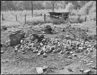 | Keywords: The remains of a house which burned down in twenty minutes recently - NARA - 541148.tif  Scope and content The remains of a house which burned down in twenty minutes recently There is no protection from fire in this camp; the nearest fire fighting equipment is in Pineville about seven miles away; water for fire fighting is pumped from the meager stream; the only telephone in the camp is in the store which is locked and no key is kept in the camp at night Houses usually burn to the ground within twenty minutes after the fire gets going Fox Ridge Mining Company Inc Hanby Mine Arjay Bell County Kentucky General notes 541148 Local identifier 245-MS-2162L Department of the Interior Solid Fuels Administration For War 04/19/1943 - 06/30/1947 NARA-Author Lee Russell 1903-1986 Photographer 2489414 <br /> Still Picture Records Section Special Media Archives Services Division NWCS-S National Archives at College Park 8601 Adelphi Road College Park MD 20740-6001 1946 08 31 Record group Record Group 245 Records of the Solid Fuels Administration for War 1937 - 1948 Record group ARC 572 Photographs of the Medical Survey of the Bituminous Coal Industry compiled 1946 - 1947 Series ARC 540230 File unit File unit ARC Variant control numbers NAIL Control Number NWDNS-245-MS-2162L yes Other versions <gallery> File The_remains_of_a_house_which_burned_down_in_twenty_minutes_recently_-_NARA_-_541148 tif tif File The_remains_of_a_house_which_burned_down_in_twenty_minutes_recently_-_NARA_-_541148 jpg jpg </gallery> NARA-cooperation PD-USGov Coal mining in the United States NARA TIF images with categorized JPGs |