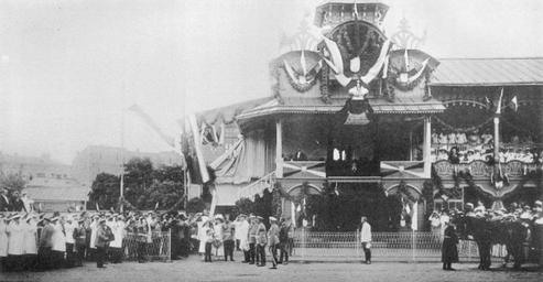 | Keywords: The Royal family at Kiev Hippodrome.jpeg  ru Киев  иколай II с семьей у павильона Пече ского Иппод ома после п иветствия с потешными 1911 Сбо ник клуба  усских националистов Выпуск четве тый и пятый 1913 author Custom license marker 2013 11 14 PD-RusEmpire Uploaded with UploadWizard Nicholas II in Kiev |