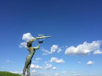 Keywords: the sea blue sky beach cloud the scenery qingdao sculpture people