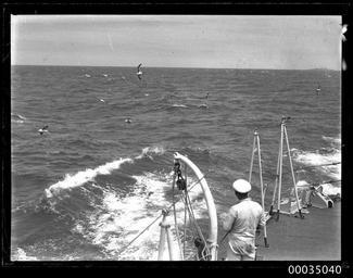 | Keywords: hood collection hoodcollection 35040 samuel j hood collection samueljhoodcollection hmas torrens hmastorrens torrens royal australian navy royalaustraliannavy navy naval vessel navalvessel sinking scuttled scuttling 1930 destroyer sydney sydney heads sydneyheads hmas anzac hmasanzac sailor officer naval officers navalofficers naval personnel navalpersonnel hmas canberra hmascanberra blackandwhite photo border monochrome outdoor black and white Having served in the Royal Australian Navy from 1916, latterly as a training platform for the Naval Reserve, HMAS TORRENS I was decommissioned and prepared as a target for Fleet Gunnery Practice. On 24 November 1930 Samuel J Hood, who was probably on board HMAS ANZAC, photographed the sinking of TORRENS off Sydney Heads. This photograph depicts a naval officer or sailor, probably on board ANZAC. In the distance to the right is probably HMAS CANBERRA. This photo is part of the Australian National Maritime Museum’s Samuel J. Hood Studio collection. Sam Hood (1872-1953) was a Sydney photographer with a passion for ships. His 60-year career spanned the romantic age of sail and two world wars. The photos in the collection were taken mainly in Sydney and Newcastle during the first half of the 20th century. The ANMM undertakes research and accepts public comments that enhance the information we hold about images in our collection. This record has been updated accordingly. Photographer: Samuel J. Hood Studio Collection Object no. 00035040 Having served in the Royal Australian Navy from 1916, latterly as a training platform for the Naval Reserve, HMAS TORRENS I was decommissioned and prepared as a target for Fleet Gunnery Practice. On 24 November 1930 Samuel J Hood, who was probably on board HMAS ANZAC, photographed the sinking of TORRENS off Sydney Heads. This photograph depicts a naval officer or sailor, probably on board ANZAC. In the distance to the right is probably HMAS CANBERRA. This photo is part of the Australian National Maritime Museum’s Samuel J. Hood Studio collection. Sam Hood (1872-1953) was a Sydney photographer with a passion for ships. His 60-year career spanned the romantic age of sail and two world wars. The photos in the collection were taken mainly in Sydney and Newcastle during the first half of the 20th century. The ANMM undertakes research and accepts public comments that enhance the information we hold about images in our collection. This record has been updated accordingly. Photographer: Samuel J. Hood Studio Collection Object no. 00035040 |