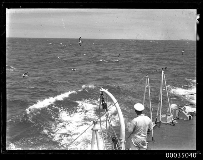 Keywords: hood collection hoodcollection 35040 samuel j hood collection samueljhoodcollection hmas torrens hmastorrens torrens royal australian navy royalaustraliannavy navy naval vessel navalvessel sinking scuttled scuttling 1930 destroyer sydney sydney heads sydneyheads hmas anzac hmasanzac sailor officer naval officers navalofficers naval personnel navalpersonnel hmas canberra hmascanberra blackandwhite photo border monochrome outdoor black and white Having served in the Royal Australian Navy from 1916, latterly as a training platform for the Naval Reserve, HMAS TORRENS I was decommissioned and prepared as a target for Fleet Gunnery Practice. On 24 November 1930 Samuel J Hood, who was probably on board HMAS ANZAC, photographed the sinking of TORRENS off Sydney Heads. This photograph depicts a naval officer or sailor, probably on board ANZAC. In the distance to the right is probably HMAS CANBERRA. This photo is part of the Australian National Maritime Museum’s Samuel J. Hood Studio collection. Sam Hood (1872-1953) was a Sydney photographer with a passion for ships. His 60-year career spanned the romantic age of sail and two world wars. The photos in the collection were taken mainly in Sydney and Newcastle during the first half of the 20th century. The ANMM undertakes research and accepts public comments that enhance the information we hold about images in our collection. This record has been updated accordingly. Photographer: Samuel J. Hood Studio Collection Object no. 00035040 Having served in the Royal Australian Navy from 1916, latterly as a training platform for the Naval Reserve, HMAS TORRENS I was decommissioned and prepared as a target for Fleet Gunnery Practice. On 24 November 1930 Samuel J Hood, who was probably on board HMAS ANZAC, photographed the sinking of TORRENS off Sydney Heads. This photograph depicts a naval officer or sailor, probably on board ANZAC. In the distance to the right is probably HMAS CANBERRA. This photo is part of the Australian National Maritime Museum’s Samuel J. Hood Studio collection. Sam Hood (1872-1953) was a Sydney photographer with a passion for ships. His 60-year career spanned the romantic age of sail and two world wars. The photos in the collection were taken mainly in Sydney and Newcastle during the first half of the 20th century. The ANMM undertakes research and accepts public comments that enhance the information we hold about images in our collection. This record has been updated accordingly. Photographer: Samuel J. Hood Studio Collection Object no. 00035040 |