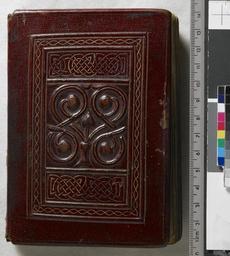 | Keywords: The St Cuthbert Gospel of St John. (formerly known as the Stonyhurst Gospel) is the oldest intact European book. - Upper cover (Add Ms 89000).jpg Style Abstract Circle Leaf; Caption Upper cover; Colour Brown Red; Edge Plain exhibition history Decorative Technique Moulded Painted Tooled in gold; Cover Material Goatskin includes morocco turkey etc The sections of the parchment pages are linked by chain stitch as with Coptic sewing and the boards are also sewn on The lower cover is decorated in a different design by another method This manuscript copy of the Gospel of St John was produced in the North of England in the late 7th century and was buried alongside St Cuthbert on Lindisfarne apparently in 698 and later found in the saint ™s coffin at Durham Cathedral in 1104 It has a beautifully-worked original red leather binding in excellent condition and is the only surviving high-status manuscript from this crucial period in British history to retain its original appearance both inside and out There is a demonstration of Coptic sewing on ibookbinding com object history Text 7c; Unspecified; Cuthbert Saint d687 object type Cc-zero place of creation Binding England place of discovery See H M Nixon and M M Foot The History of Decorated Bookbinding in England Oxford 1992 pp 1 “2 The Stonyhurst Gospel of Saint John / Oxford Printed for the Roxburghe Club by Oxford U P 1969 Includes a facsimile of the ms The British Library's main web site also holds information about the Gospel Former Library shelf mark Loan 74 British Library image http //www bl uk/catalogues/bookbindings/LargeImage aspx RecordId 020-000015321 ImageId ImageId 57580 Copyright BL The St Cuthbert Gospel of St John formerly known as the Stonyhurst Gospel is the oldest intact European book Uploaded with GWToolset The St Cuthbert Gospel of St John formerly known as the Stonyhurst Gospel is the oldest intact European book - Upper cover Add Ms 89000 http //www webarchive org uk/bldatasets/bindings/add_ms_89000_fcover-leftc jpg 7th-century bookbinding St Cuthbert Gospel c 698 - BL Add MS 89000 Ž British Library Bookbindings Taken with Phase One P45+ |