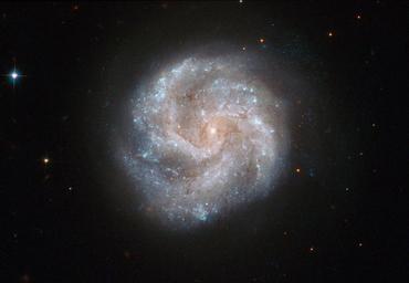 Keywords: ic 391 ic391 black background lunar texture Hubble's Advanced Camera for Surveys has captured this moment in the ever-changing life of a spiral galaxy called IC 391. Although these massive star cities appear static and unchanging, their stellar inhabitants are constantly moving and evolving, with new stars being born and old stars reaching the ends of their lives —often in spectacular fashion, with an immense supernova explosion that can be viewed from Earth. On 3 January 2001, members of the Beijing Astronomical Observatory discovered such an explosion within IC 391 and it was named SN 2001B. This was a Type Ib supernova, which occurs when a massive star runs out of fuel for nuclear fusion and collapses, emitting vast amounts of radiation and creating a powerful shock wave. Hubble has contributed much to our understanding of supernovae in recent years, and it has made an extensive study of supernova 1987A (heic0704), the brightest such stellar explosion to be seen from Earth in over 400 years. IC 391 lies about 80 million light-years away in the constellation of Camelopardalis (the Giraffe) in the far northern part of the sky. The British amateur observer William Denning discovered it in the late nineteenth century, and described it as faint, small and round. This picture was assembled from images taken with Hubble’s Wide Field Channel on the Advanced Camera for Surveys. Images through a blue filter (F435W) were coloured blue, those through a green filter (F555W) are shown as green and those through a near-infrared filter (F814W) are shown in red. The exposure times were 800 s, 700 s and 700 s respectively and the field of view is 2.1 by 1.4 arcminutes. Hubble's Advanced Camera for Surveys has captured this moment in the ever-changing life of a spiral galaxy called IC 391. Although these massive star cities appear static and unchanging, their stellar inhabitants are constantly moving and evolving, with new stars being born and old stars reaching the ends of their lives —often in spectacular fashion, with an immense supernova explosion that can be viewed from Earth. On 3 January 2001, members of the Beijing Astronomical Observatory discovered such an explosion within IC 391 and it was named SN 2001B. This was a Type Ib supernova, which occurs when a massive star runs out of fuel for nuclear fusion and collapses, emitting vast amounts of radiation and creating a powerful shock wave. Hubble has contributed much to our understanding of supernovae in recent years, and it has made an extensive study of supernova 1987A (heic0704), the brightest such stellar explosion to be seen from Earth in over 400 years. IC 391 lies about 80 million light-years away in the constellation of Camelopardalis (the Giraffe) in the far northern part of the sky. The British amateur observer William Denning discovered it in the late nineteenth century, and described it as faint, small and round. This picture was assembled from images taken with Hubble’s Wide Field Channel on the Advanced Camera for Surveys. Images through a blue filter (F435W) were coloured blue, those through a green filter (F555W) are shown as green and those through a near-infrared filter (F814W) are shown in red. The exposure times were 800 s, 700 s and 700 s respectively and the field of view is 2.1 by 1.4 arcminutes. |