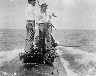 Keywords: The US Navy in the First World War Q103675.jpg The US Navy in the First World War<br/> American sailors signalling from deck of a submarine American official photographer First World War http //media iwm org uk/iwm/mediaLib//349/media-349376/large jpg Q 103675 205139238 This image was created and released by the Imperial War Museum on the http //www iwm org uk/corporate/privacy-copyright/licence IWM Non Commercial Licence This photograph was taken by American military personnel in their official duties and is public domain under US law consequently the following licence applies in addition to any other claim PD-USGov-Mil American First World War Official Exchange Collection Associated people and organisations US Navy Associated themes US Navy 1917-1918 Associated keywords Submarine Warfare Naval Warfare photographs PD-USGov American First World War Official Exchange collection Images uploaded by Fæ