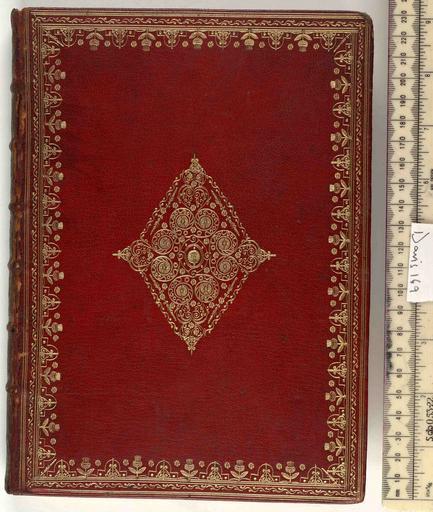Keywords: The Use of Macq's Tables of Lines Tangents & Secants -ms- - Upper cover (Davis169).jpg Style Thistle Floral Oval motif Harleian centrepiece and border of small tools; Caption Upper cover; Colour Red; Edge Unspecified exhibition history Decorative Technique Tooled in gold; Cover Material Goatskin includes morocco turkey etc Metallic varnish paper endleaves Davis 204 is also bound by this unnamed binder object history Text last quarter of 18c; Unspecified; Unspecified object type Cc-zero place of creation Binding England place of discovery See M M Foot The Henry Davis Gift vol II London 1983 British Library image http //www bl uk/catalogues/bookbindings/LargeImage aspx RecordId 020-000003504 ImageId ImageId 41357 Copyright BL The Use of Macq's Tables of Lines Tangents Secants ms Uploaded with GWToolset The Use of Macq's Tables of Lines Tangents Secants ms - Upper cover Davis169 http //www webarchive org uk/bldatasets/bindings/5874_4 jpg Bookbinding 18th-century bookbinding British Library Bookbindings |
