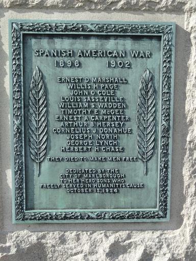 Keywords: The Volunteer by Co. Crawford - Marlborough, MA - DSC04401.JPG A bronze sculpture depicting a Spanish American War infantryman with his rifle held at the ready position The sculpture stands atop a stone base adorned with a bronze plaque listing the original roster of Company F 6th Massachusetts Infantry United States Volunteers who served in the Cuban and Puerto Rican campaigns Inscription T F MCGANN SONS CO BOSTON MA On front of bronze base THE VOLUNTEER On bronze plaque on front of stone base SPANISH AMERICAN WAR/1898-1902/ list of names / DEDICATED BY THE CITY OF MARLBOROUGH TO HER SONS WHO FREELY SERVED IN HUMANITY'S CAUSE unsigned Founder's mark appears Daderot 2012-02-20 11 17 49 Daderot cc0 cc0 The Volunteer by Co Crawford |