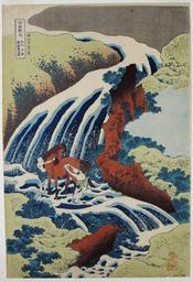 | Keywords: The Waterfall where Yoshitsune washed his horse at Yoshino, Yamato Province (5758869885).jpg  en <b>Accession Number </b> 1957 192 <b>Display Artist </b> Katsushika Hokusai <b>Display Title </b> The Waterfall where Yoshitsune washed his horse at Yoshino Yamato Province <b>Translation s </b> Washu Yoshino Yoshitsune uma arai no taki <b>Series Title </b> A Tour of Waterfalls in the Provinces <b>Suite Name </b> Shokoku taki meguri <b>Creation Date </b> 1831-1834 <b>Medium </b> Woodblock <b>Height </b> 15 1/4 in <b>Width </b> 10 3/8 in <b>Display Dimensions </b> 15 1/4 in x 10 3/8 in 38 74 cm x 26 35 cm <b>Publisher </b> Nishimuraya Yohachi <b>Credit Line </b> Bequest of Mrs Cora Timken Burnett <b>Label Copy </b> Peasants scrubbing their horse beneath the torrents of a waterfall would remind savvy nineteenth-century viewers of how the samurai Minamoto Yoshitsune 115989 hero of the Genji clan is said to have done the same while taking refuge in the mountains As can be seen in many Ukiyo-e prints the distant past merges with daily life amidst the awe-inspiring beauty of nature in amusing and clever ways The zig-zag turn of the composition and the cascade of water seemingly frozen in time make Hokusais vision truly exceptional <b>Label Copy Spanish </b> Los expertos del siglo XIX podan relacionar a los campesinos baando a sus caballos en una catarata con el samurai Minamoto Yoshitsune 115989 el hroe del clan de Genji quien haba hecho lo mismo mientras se refugiaba en las montaas Como puede verse en muchas impresiones del Ukiyo-e rodeados por la belleza sobrecogedora de la naturaleza el pasado distante y la vida cotidiana se unen de maneras divertidas La visin de Hokusai es verdaderamente excepcional gracias a la composicin zigzagueante y la cascada aparentemente congelada en el tiempo <b>Collection </b> http //www sdmart org/art/our-collection/asian-art The San Diego Museum of Art 2007-05-09 15 45 06 https //www flickr com/photos/thesandiegomuseumofartcollection/5758869885/ Flickr en thesandiegomuseumofartcollection PD-old-100 Art of Japan in the San Diego Museum of Art |