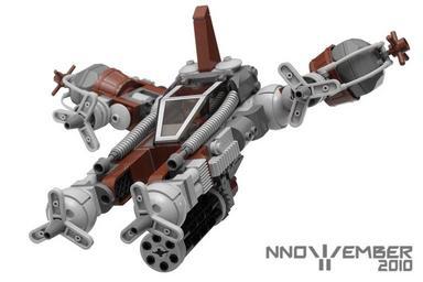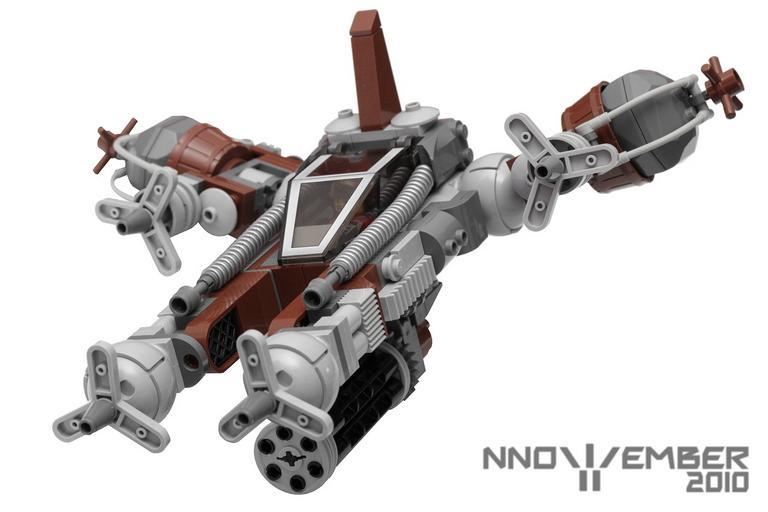 | Keywords: canon 100mm canon100mm lego fighter sky-fi skyfi steampunk vic viper vicviper nnovvember 2010 moc white background Lift for this thing is provided by two floating rocks fastened to the rear wings, and forward motion by four steamball-powered propeller engines.  This is heavily influenced by the work of Pain Parade. He even posted a design with a similar engine arrangement a few days ago, though I did have this mostly built before that. Lift for this thing is provided by two floating rocks fastened to the rear wings, and forward motion by four steamball-powered propeller engines.  This is heavily influenced by the work of Pain Parade. He even posted a design with a similar engine arrangement a few days ago, though I did have this mostly built before that. |
