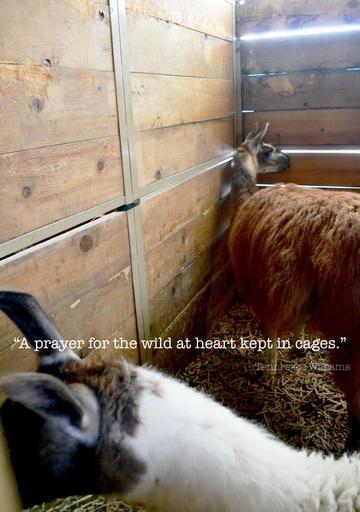 | Keywords: llama llamas stall wool quote caged animals animal rights a prayer for wild heart kept cages tennessee williams free will freewill waking up wakingup outdoor Animals can communicate quite well. And they do. And generally speaking, they are ignored. ~Alice Walker Animals can communicate quite well. And they do. And generally speaking, they are ignored. ~Alice Walker |