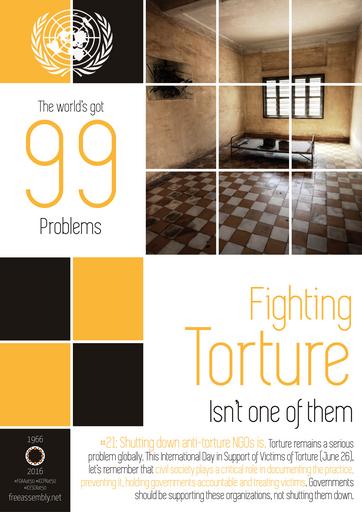 | Keywords: torture #foaaat50 foaaat50 #iccprat50 iccprat50 #icescrat50 icescrat50 99problems ngos text #21 in our series of #99problems posters, to mark the 50th anniversary of the international rights to freedom of peaceful assembly and of association. 99 reminders that human rights are not the problem. #21 in our series of #99problems posters, to mark the 50th anniversary of the international rights to freedom of peaceful assembly and of association. 99 reminders that human rights are not the problem. |