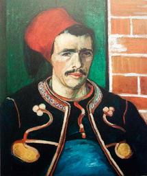 Keywords: The Zouave (Half length) (JH 1486) - My Dream.jpg Artwork Q7776916 Creator Vincent van Gogh Gasse in Saintes-Maries The Zouave Half-figure Arles 1888 06 oil canvas ; digital reconstruction of the original colours cm 65 54 Institution Van Gogh Museum Amsterdam accession number object history credit line Van Gogh catalogues 423 1486 Photo by Szilas at the Van Gogh My Dream Exhibition in Budapest 2013 PD-old-100 The Zouave Half-figure by Vincent van Gogh Van Gogh My Dream Exhibition