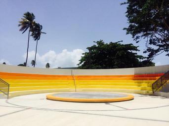 Keywords: theater stage amphitheater empty seat rows outdoors arena stadium entertainment public seating culture park