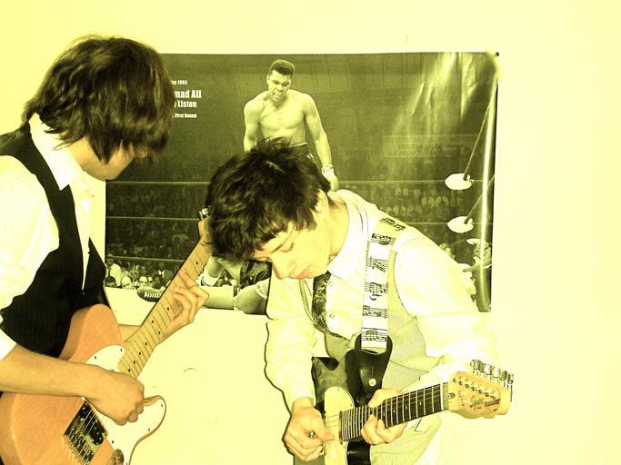 Keywords: TheBrigadiers.JPG en The Brigadiers performing an acoustic set Own TheBrigadiers123 Musical groups from unidentified countries People with guitars