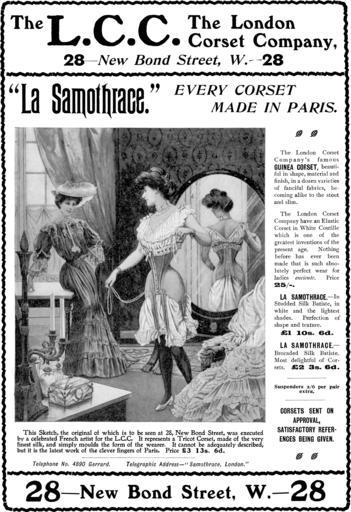 | Keywords: TheLCC TheLondonCorsetCompanyLaSamothrace.png The L C C The London Corset Company La Samothrace EVERY CORSET MADE IN PARIS from MAGAZINES JOURNALS FROM THE DATE STATED 1908 anonymus signature Kowalski bottom left PD Note this advertisements is from 1908 but the image is used 1905-1908 PD-old Corset advertisements 1908 advertisements Illustrations of females with mirrors and corsets 1905 advertisements 1906 advertisements 1907 advertisements Fashion in 1908 | ||||