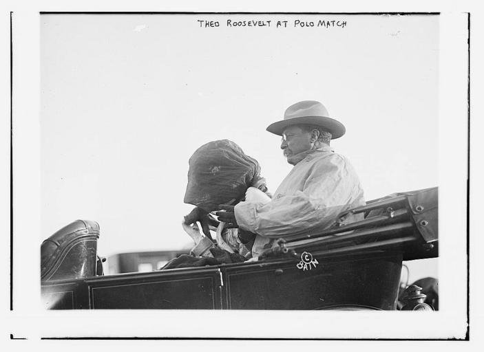 Keywords: Theo. Roosevelt at Polo Match (LOC).jpg Bain News Service publisher Theo Roosevelt at Polo Match between 1910 and 1915 1 negative glass ; 5 x 7 in or smaller Notes Title from unverified data provided by the Bain News Service on the negatives or caption cards Forms part of George Grantham Bain Collection Library of Congress Format Glass negatives Rights Info No known restrictions on publication Repository Library of Congress Prints and Photographs Division Washington D C 20540 USA http //hdl loc gov/loc pnp/pp print hdl loc gov/loc pnp/pp print General information about the Bain Collection is available at http //hdl loc gov/loc pnp/pp ggbain hdl loc gov/loc pnp/pp ggbain Persistent URL http //hdl loc gov/loc pnp/ggbain 09266 hdl loc gov/loc pnp/ggbain 09266 Call Number LC-B2- 2204-13 http //www flickr com/photos/8623220 N02/2162676331/ Theo Roosevelt at Polo Match LOC Uploaded by pixeltoo http //www flickr com/people/8623220 N02 The Library of Congress http //www loc gov/rr/print/195_copr html noknown PD-Bain LOC-image ggbain 09266 File Upload Bot Magnus Manske January 24 2010 United States in the 1910s People with automobiles Polo Veils Presidential automobiles of the United States 1910 Theodore Roosevelt |