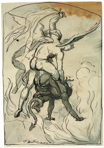 | Keywords: Theodor Mintrop - St. Michael Fighting the Devil - Google Art Project.jpg commons artist commons date commons medium commons dimensions commons institution commons location commons references commons object_history commons exhibition_history commons credit_line commons inscriptions commons notes commons accession_number commons source commons permission commons other_versions commons zoom core title en St Michael Fighting the Devil core creator Theodor Mintrop core date dateCreated 1858 core format w383 x h550 cm core type Ink pen on paper core relation http //www smkp de/ core rights Museum Kunstpalast Düsseldorf Sammlung der Kunstakademie NRW ; photo Horst Kolberg Neuss art artist_birth_place Essen-Werden art artist_death_place Düsseldorf art artist_date 1814/1870 c-0d67ed86 customtext provinience Sammlung der Kunstakademie NRW c-0d67ed86 customtext object_work_type_ german Feder auf Papier c-0d67ed86 customtext object_title_ german Der Kampf des Erzengels Michael mit dem Teufel c-0d67ed86 customtext object_notes_ german Theodor Mintrop war bis zu seinem 30 Lebensjahr Knecht auf dem Hof seines Bruders und kam erst 1844 durch ein Stipendium an die Düsseldorfer Kunstakademie Er besuchte zunächst die Klassen von Carl Ferdinand Sohn und Wilhelm von Schadow ehe er 1850 in die Meisterklasse aufgenommen wurde Mintrops Å’uvre besteht im Wesentlichen aus Zeichnungen von denen viele von anderen Künstlern lithographiert und gestochen wurden Neben diesen Werken haben sich lavierte Federzeichnungen erhalten die stilistisch in der Tradition des Barock stehen Hierzu gehört das Blatt Der Kampf des Erzengels Michael mit dem Teufel In einer klassischen Dreieckskomposition kniet der Engel mit seinem rechten Bein auf dem Teufel und zwingt diesen nieder Mit dem linken Arm holt er weit aus um den Widersacher mit seinem Flammenschwert zu verjagen Beide Protagonisten sind in Rückenansicht wiedergegeben Eine Eigenheit Mintrops wird sichtbar In den ¹ barocken º Zeichnungen sind männliche Figuren “ dies gilt hier auch für den Engel “ stets unbekleidet dargestellt Christina Voit google display_date 1858 google is_artproject TRUE google is_gigapixel FALSE google is_secured TRUE google partner/id 000000000d67ed86 google picasa_token GaVE3cWVqL2sKAQ5iib8L6jIRcc special url_id twGZIqLqAZxS3A google partner/name Museum Kunstpalast Düsseldorf special partner/name_no_lang Museum Kunstpalast Düsseldorf PD-old-100-1923 1870 Theodor Mintrop Google Art Project works by Theodor Mintrop |