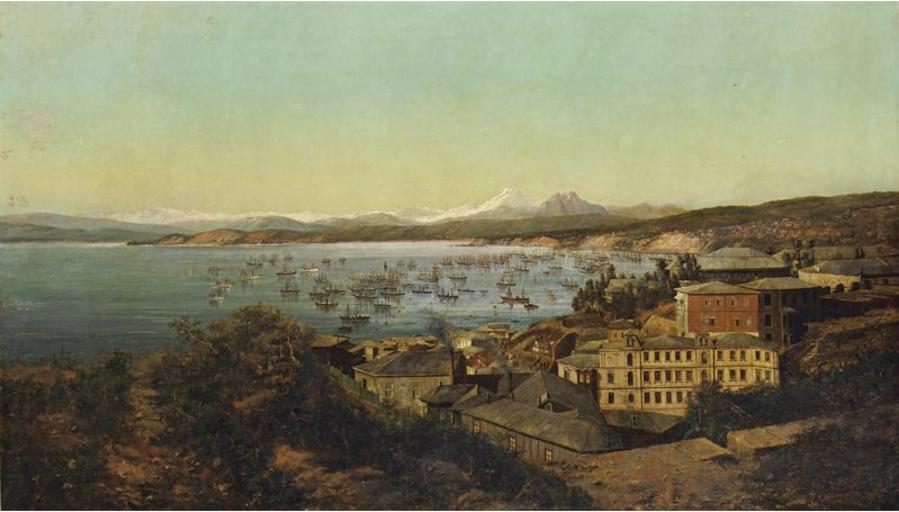 | Keywords: Theodor Ohlsen - Ein Blick auf den Hafen von ValparaÃso.jpg Theodor Ohlsen 1855 “1913 en A view of the port of ValparaÃso Ein Blick auf den Hafen von ValparaÃso 1891 oil canvas cm 151 1 87 9 object history credit line signed inscribed Valp and dated 91 lower left accession number http //www sothebys com/en/ecat/lot render html/2004/latin-american-art-n08001/lotNum/76 Sotheby's Other versions PD-Art-100 Theodor Ohlsen Landscape paintings of Chile Oil paintings of seascapes 1891 paintings Images from Sotheby's 1890s landscape paintings ValparaÃso in art |