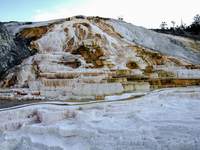 Keywords: thermal springs mammoth hot spring limestone yellowstone national park wyoming usa landscape scenery tourist attraction erosion nature volcanic minerals water geothermal terrace deposits hot water