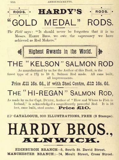 Keywords: TheSalmonFlyAdvertisment.JPG en Hardy's advertisement from The Salmon Fly George M Kelson 1895 Extracted from public domain pdf version of The Salmon Fly George M Kelson 1895 Mike Cline 2008-10 PD-old Fly fishing literature