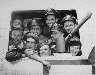 Keywords: u.s. national archives usnationalarchives veterans day veteransday nara:arcid=535525 aviation aircraft airplane military aviation militaryaviation bomber united states army air forces unitedstatesarmyairforces usaaf consolidated aircraft consolidatedaircraft consolidated b-24 liberator consolidatedb24liberator consolidated liberator consolidatedliberator b-24 liberator b24liberator b-24 b24 liberator b-24l b24l liberator bomber liberatorbomber consolidated b-24 consolidatedb24 waist gun waistgun smile 1945 05/22/1945 05221945 may 22, 1945 may221945 world war ii worldwarii bradley field, windsor locks, connecticut bradleyfieldwindsorlocksconnecticut bradley field bradleyfield windsor locks, connecticut windsorlocksconnecticut windsor locks windsorlocks connecticut blackandwhite monochrome black and white Original Caption: These Yank airmen beam broadly as they look out from their bomber, following their arrival at Bradley Field, Windsor Locks, Connecticut, May 22, on a flight from Europe. In their bomber "Hell Hen," they helped to bomb Germany out of the war. Press Association., 1945. U.S. National Archives’ Local Identifier: 208-AA-1H(12) From:: Series Photographs of the Allies and Axis, compiled 1942 - 1945 Created By:: Office for Emergency Management. Office of War Information. Overseas Operations Branch. New York Office. News and Features Bureau. (12/17/1942 - 09/15/1945) Production Date: 1945 Persistent URL: arcweb.archives.gov/arc/action/ExternalIdSearch?id=535525 Repository: Still Picture Records Section, National Archives at College Park (College Park, MD) For information about ordering reproductions of photographs held by the Still Picture Unit, visit: www.archives.gov/research/order/still-pictures.html Reproductions may be ordered via an independent vendor. NARA maintains a list of vendors at www.archives.gov/research/order/vendors-photos-maps-dc.html Access Restrictions: Unrestricted Use Restrictions: Unrestricted Original Caption: These Yank airmen beam broadly as they look out from their bomber, following their arrival at Bradley Field, Windsor Locks, Connecticut, May 22, on a flight from Europe. In their bomber "Hell Hen," they helped to bomb Germany out of the war. Press Association., 1945. U.S. National Archives’ Local Identifier: 208-AA-1H(12) From:: Series Photographs of the Allies and Axis, compiled 1942 - 1945 Created By:: Office for Emergency Management. Office of War Information. Overseas Operations Branch. New York Office. News and Features Bureau. (12/17/1942 - 09/15/1945) Production Date: 1945 Persistent URL: arcweb.archives.gov/arc/action/ExternalIdSearch?id=535525 Repository: Still Picture Records Section, National Archives at College Park (College Park, MD) For information about ordering reproductions of photographs held by the Still Picture Unit, visit: www.archives.gov/research/order/still-pictures.html Reproductions may be ordered via an independent vendor. NARA maintains a list of vendors at www.archives.gov/research/order/vendors-photos-maps-dc.html Access Restrictions: Unrestricted Use Restrictions: Unrestricted |