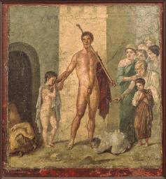 | Keywords: Theseus liberator MANN 9043.jpg between 45 79 29 juillet 2015 for photograph Fresco Size cm 88 97 institution Naples National Archaeological Museum second floor room LXXIII place of discovery House of M Gavius Rufus object history exhibition history found in 1868 on display since 1870 credit line accession number 9043 place of creation Pompeii http //cir campania beniculturali it/museoarcheologiconazionale/itinerari-tematici/nel-museo/collezioni-pompeiane/RIT_RA91 searchterm 9043 PD-old-100 cc-zero Minotaur in ancient Roman paintings Casa di Gavius Rufus Pompeii Ancient Roman frescos - Fourth style Ancient Roman frescos in the Museo Archeologico Naples 9043 Paintings of standing men at full length Paintings of nude males from Italy Quality images by Jebulon Quality images of Naples Quality images of paintings QualityImage |