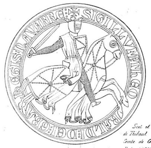 Keywords: Thibaut 5.jpg en Theobald II of Navarre Voyage archéologique et pittoresque dans le département de l'Aube et dans l'ancien diocèse de Troyes Anne Franco̧is Arnaud 1837 PD-old Theobald II of Navarre Medieval seals