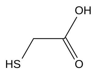 Keywords: Thioglycolic acid.svg Strukturformel von Mercaptoessigsäure chemical structure of Thioglycolic acid Own 2006-10-12 Rhododendronbusch public domain Thioglycolic acid