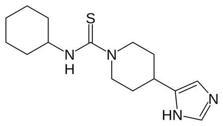 Keywords: Thioperamide.svg Skeletal formula of thioperamide Created using http //www acdlabs com/download/chemsk html ACD/ChemSketch 10 0 and Inkscape Own 2007-04-25 Fvasconcellos 19 33 25 April 2007 UTC Cyclohexyl compounds H3 receptor antagonists H4 receptor antagonists Imidazoles Piperidines Thioureas |