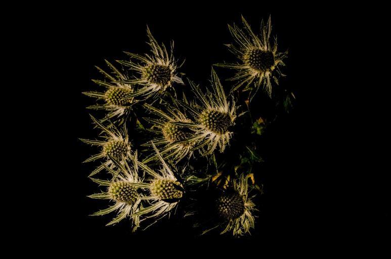 Keywords: thistle plant decoration shadow close-up seasons autumn black studio