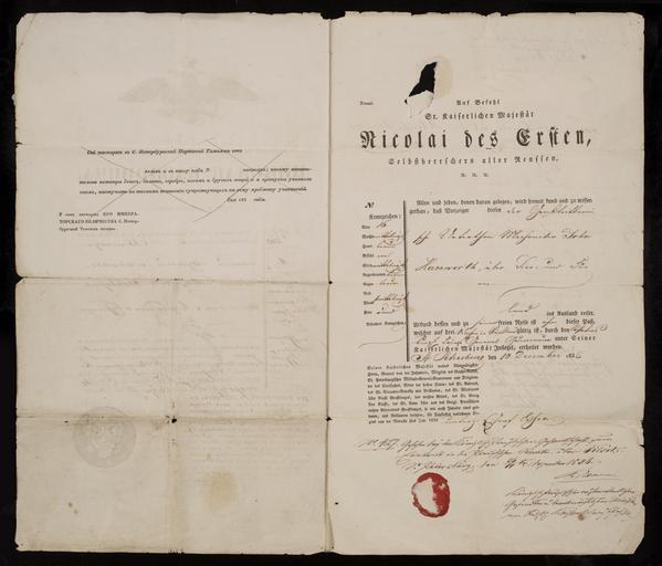 Keywords: железная дорога железнаядорога царскосельская ж.д. царскосельскаяжд санкт-петербург санктпетербург исторический ж/д жд россия russia railway john wesley hackworth johnwesleyhackworth паспорт документ эссен курляндия лифляндия рига митава гакворт text document writing monochrome 'Timothy Hackwork Papers' Collection. Дубликат на немецком языке. ru: Паспорт John Wesley Hackworth сына Тимоти Гакворта Timothy Hackworth - строителя первого паровоза Царскосельской железной дороги. Джон Уисли Гакворт (Хэкворт), вместе с рабочими (вероятно 4 человека), был снаряжён в Россию отцом для сборки и обкатки первого паровоза и обучения управления им персонала Царскосельской дороги. Паспорт был выдан 12 декабря 1836 г. сроком на 3 недели для выезда из России через Лифляндию и Курляндию. Путь следования составил: 21 декабря - Рига (Лифляндия), 22 декабря - Митава (Курляндия), 23 декабря - ???, 4 января 1836[7] г. - ???. 5 января 1837 г. - Берлин. Подробнее: johnwesleyhackworth.blogspot.ru/2014/05/john-wesley-hackw... Снимок любезно предоставлен автором блога - Trev Teasdel. 'Timothy Hackwork Papers' Collection. Дубликат на немецком языке. ru: Паспорт John Wesley Hackworth сына Тимоти Гакворта Timothy Hackworth - строителя первого паровоза Царскосельской железной дороги. Джон Уисли Гакворт (Хэкворт), вместе с рабочими (вероятно 4 человека), был снаряжён в Россию отцом для сборки и обкатки первого паровоза и обучения управления им персонала Царскосельской дороги. Паспорт был выдан 12 декабря 1836 г. сроком на 3 недели для выезда из России через Лифляндию и Курляндию. Путь следования составил: 21 декабря - Рига (Лифляндия), 22 декабря - Митава (Курляндия), 23 декабря - ???, 4 января 1836[7] г. - ???. 5 января 1837 г. - Берлин. Подробнее: johnwesleyhackworth.blogspot.ru/2014/05/john-wesley-hackw... Снимок любезно предоставлен автором блога - Trev Teasdel.