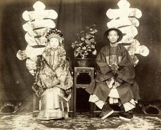 Keywords: Thomas Child, Bride and Groom.jpg en Photograph of a bride and groom taken by Thomas Child 1841-1898 The bride is the granddaughter of Zeng Goufan a high-ranking Han Chinese official 1870 1889 http //www bbc co uk/news/in-pictures-34697724 Rare early photographs of Peking Thomas Child 1841-1898 other versions PD-old-70-1923 Photographs of Beijing by Thomas Child Uploaded with UploadWizard |
