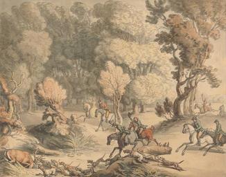 Keywords: Thomas Rowlandson - Stag at Bay - Scene near Taplow, Berks. - Google Art Project.jpg No inscription Inscription _Signed_and_Dated Not signed not dated Not on View Watercolor with pen and red black gray and brown ink on thick moderately textured beige wove paper dogs animals stag horses animals men women hunting stream riverbank plants shrubs trees sporting art special url_id 1wEUZspbDqFrPg PD-old-100-1923 1827 Drawings and watercolours by Thomas Rowlandson Google Art Project works by Thomas Rowlandson Hunting by horse in paintings |