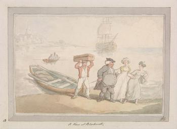 | Keywords: Thomas Rowlandson - A View at Blackwall - Google Art Project.jpg Inscribed in dark gray ink on mount lower center A View at Blackwall ; inscribed in dark gray ink on mount lower left 42 ; in dark gray ink lower right on mount WE ; verso in royal blue ink lower center Paul Mellon Collection seal x written in graphite in middle of Paul Mellon seal; in graphite lower right D 601 ; with pen in dark gray ink upper right No 89 ; In brown ink upper left 10- 15- 5- 36 ; in brown ink center left 21 5 4 10 20 80 123 5 36 69 unreadable numbers in graphite Inscription _Marks watermark similar to Heawood 3460 except the date ends with 26 and appears below the name Inscription _Signed_and_Dated Not signed not dated Not on View Watercolor with red-brown and gray ink over graphite with gray wash lines; verso variously colored splotches of watercolor and brown ink on wove paper / laid paper support men women sailors water shore landform suitcase ship view marine art boat special url_id 8wHnubuEIbLLyw PD-old-100-1923 1827 Drawings and watercolours by Thomas Rowlandson Google Art Project works by Thomas Rowlandson |