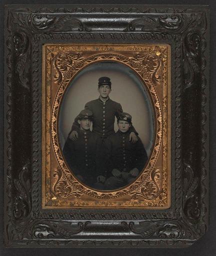 Keywords: library of congress libraryofcongress dc:identifier=http://hdl.loc.gov/loc.pnp/ppmsca.27542 dc:identifier=httphdllocgovlocpnpppmsca27542 xmlns:dc=http://purl.org/dc/elements/1.1/ xmlns:dc=httppurlorgdcelements11 u.s. civil war uscivilwar american civil war americancivilwar the civil war thecivilwar civil war civilwar war between the states warbetweenthestates united states of america unitedstatesofamerica u.s.a. usa the union theunion union the north thenorth yankee yankees soldier soldiers round photo border picture frame [Three unidentified soldiers in Union uniforms and Company E, 8th Regiment forage caps] [between 1861 and 1865] 1 photograph : quarter-plate ambrotype, hand-colored ; 16.5 x 14.0 cm (frame) Notes: Title devised by Library staff. Case: Berg, no. 7-23. Gift; Tom Liljenquist; 2010; (DLC/PP-2010:105). Subjects: United States.--Army--People--1860-1870. Soldiers--Union--1860-1870. Military uniforms--Union--1860-1870. United States--History--Civil War, 1861-1865--Military personnel--Union. Format: Group portraits--1860-1870. Portrait photographs--1860-1870. Ambrotypes--Hand-colored--1860-1870. Rights Info: No known restrictions on publication. Repository: Library of Congress, Prints and Photographs Division, Washington, D.C. 20540 USA, hdl.loc.gov/loc.pnp/pp.print Part Of: Ambrotype/Tintype filing series (Library of Congress) (DLC) 2010650518 Liljenquist Family collection (Library of Congress) (DLC) 2010650519 More information about this collection is available at hdl.loc.gov/loc.pnp/pp.lilj Persistent URL: hdl.loc.gov/loc.pnp/ppmsca.27542 Call Number: AMB/TIN no. 5035 [Three unidentified soldiers in Union uniforms and Company E, 8th Regiment forage caps] [between 1861 and 1865] 1 photograph : quarter-plate ambrotype, hand-colored ; 16.5 x 14.0 cm (frame) Notes: Title devised by Library staff. Case: Berg, no. 7-23. Gift; Tom Liljenquist; 2010; (DLC/PP-2010:105). Subjects: United States.--Army--People--1860-1870. Soldiers--Union--1860-1870. Military uniforms--Union--1860-1870. United States--History--Civil War, 1861-1865--Military personnel--Union. Format: Group portraits--1860-1870. Portrait photographs--1860-1870. Ambrotypes--Hand-colored--1860-1870. Rights Info: No known restrictions on publication. Repository: Library of Congress, Prints and Photographs Division, Washington, D.C. 20540 USA, hdl.loc.gov/loc.pnp/pp.print Part Of: Ambrotype/Tintype filing series (Library of Congress) (DLC) 2010650518 Liljenquist Family collection (Library of Congress) (DLC) 2010650519 More information about this collection is available at hdl.loc.gov/loc.pnp/pp.lilj Persistent URL: hdl.loc.gov/loc.pnp/ppmsca.27542 Call Number: AMB/TIN no. 5035 |