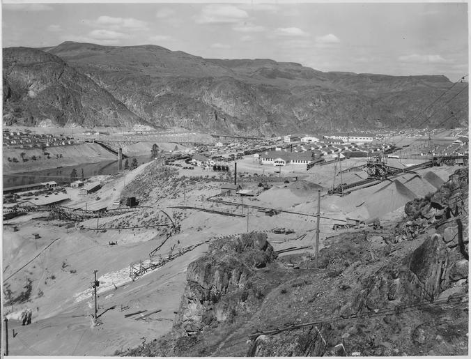 | Keywords: "Three-view panorama from top of east abutment. The Eastmix concrete plant under construction appears in the center... - NARA - 294279.tif Scope and content Photograph from Volume Two of a series of photo albums documenting the construction of the Grand Coulee Dam and related work on the Columbia Basin Project General notes This image is part of a panoramic view which includes items 1007 1007-A and 1007-B The original image measures approximately 22 inches in width 294279 Local identifier Department of the Interior Bureau of Reclamation Engineering and Research Center 05/18/1981 - 03/04/1988 NARA's Rocky Mountain Region Denver NRGA Building 48 Denver Federal Center West 6th Avenue and Kipling Street Denver CO 80225-0307 1936-04-02 Record group Record Group 115 Records of the Bureau of Reclamation 1889 - 2008 Record group ARC 444 Photograph albums compiled 1903 - 1972 Series ARC 293611 File unit File unit ARC Variant control numbers NAIL Control Number NRG-115-CONSTPHO85006-COLBASIN21007B yes Other versions <gallery> File Three-view_panorama_from_top_of_east_abutment _The_Eastmix_concrete_plant_under_construction_appears_in_the_center _-_NARA_-_294279 tif tif File Three-view_panorama_from_top_of_east_abutment _The_Eastmix_concrete_plant_under_construction_appears_in_the_center _-_NARA_-_294279 jpg jpg </gallery> NARA-cooperation PD-USGov Construction of the Grand Coulee Dam NARA TIF images with categorized JPGs |