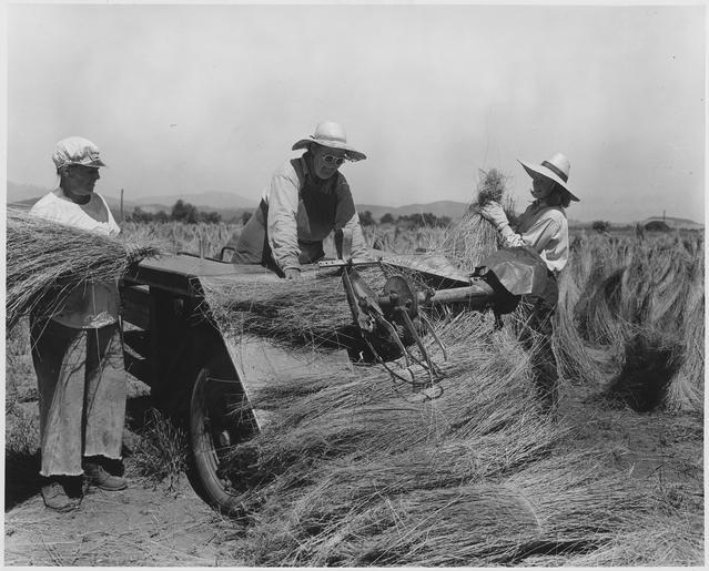| Keywords: Three women place dry flax straw into a machine which binds it into bundles for convenient handling. - NARA - 283913.tif Three women place dry flax straw into a machine which binds it into bundles for convenient handling Scope and content General notes 283913 Local identifier Department of Agriculture Agricultural Research Service 06/17/1981 - NARA's Central Plains Region Kansas City NREA 400 West Pershing Road Kansas City MO 64108 ca 06/1945 Record group Record Group 54 Records of the Bureau of Plant Industry Soils and Agricultural Engineering 1853 - 1977 Record group ARC 383 Flax Project Photographs compiled 1908 - 1977 Series ARC 283896 File unit File unit ARC Variant control numbers NAIL Control Number NRE-54-FP PHO -120 yes Other versions <gallery> File Three_women_place_dry_flax_straw_into_a_machine_which_binds_it_into_bundles_for_convenient_handling _-_NARA_-_283913 tif tif File Three_women_place_dry_flax_straw_into_a_machine_which_binds_it_into_bundles_for_convenient_handling _-_NARA_-_283913 jpg jpg </gallery> NARA-cooperation PD-USGov NARA TIF images with categorized JPGs Flax production Women at work in World War II Agricultural machines |