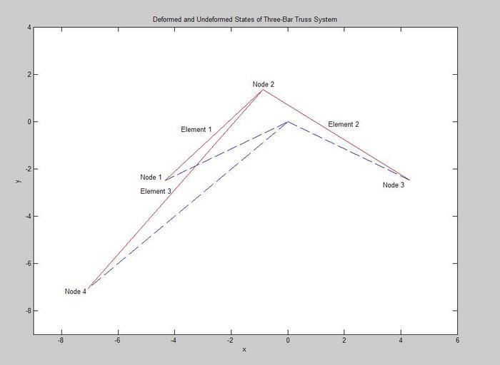 Keywords: Threebar.jpg en Example of a three-bar truss system deformation due to applied forces Own Eml4500 f08 ateam didomenico Trusses