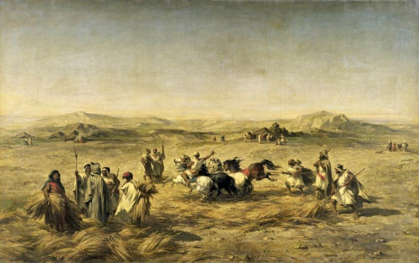 | Keywords: Threshing Wheat in Algeria (1853).jpg  Adolphe Pierre Leleux 1812 “1891 1853 Oil on canvas cm 120 196 institution Palais des Beaux-Arts de Lille object history credit line Adolphe Leleux / 1853 ~ lower center signature / date accession number 1 artfinder com<br/>2 230385 PD-old-100-1923 DEFAULTSORT Leleux Adolphe; Threshing Wheat in Algeria 1853; Musee des Beaux-Arts de Lille Adolphe Pierre Leleux Départements des peintures XVIe - XXe siècles Palais des Beaux-Arts de Lille 1850s landscape paintings Harvest in art |