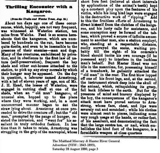 | Keywords: Thrilling encounter with a kangaroo 1880.jpg en from the http //www nla gov au/ndp/ National Library Australian newspapers digitisation program which are pre-1955 so no copyright The service includes newspapers published in each state and territory from the 1800s to the mid-1950s when copyright applies http //www nla gov au/ndp/ National Library Australian newspapers digitisation program The Maitland Mercury Hunter River General Advertiser 1880-08-28 PD-Australia National Library of Australia - Australian Newspapers Service |