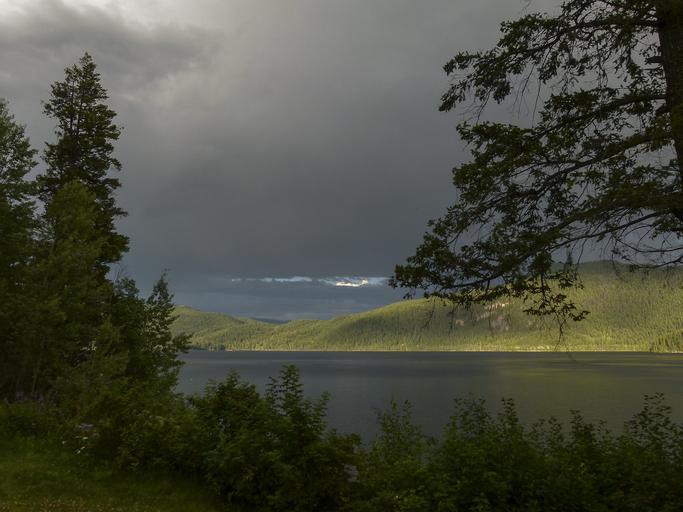 Keywords: thunderstorm dark clouds canim lake british columbia canada scenery weather mood summer natural natural water landscape nature lake water tree